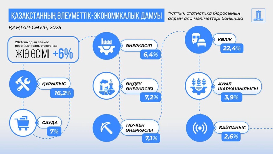Ұлттық статистика бюросының болжамды деректеріне сәйкес, еліміздің 2025 жылғы қаңтар-сәуірдегі әлеуметтік–экономикалық дамуының алдын ала қорытындылары.